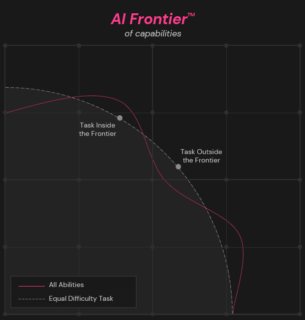 To navigate this change, we've embraced the concept of the AI Frontier – a dynamic map delineating AI's potential from tasks where human touch remains superior. This frontier doesn't extend uniformly; it's irregular, reflecting uneven progress across different industries, functions and technologies.